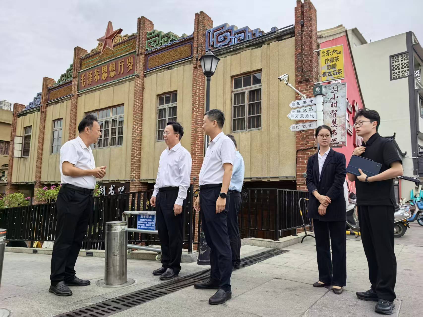 调研组一行到永昌古庙、郭氏祠堂、洪祠、解放路以及玉石油柑基地开展走访调研,听取关于棉湖镇以“百千万工程”为抓手,推动文商旅融合发展、历史文化活化保护、产业创新等方面情况介绍。