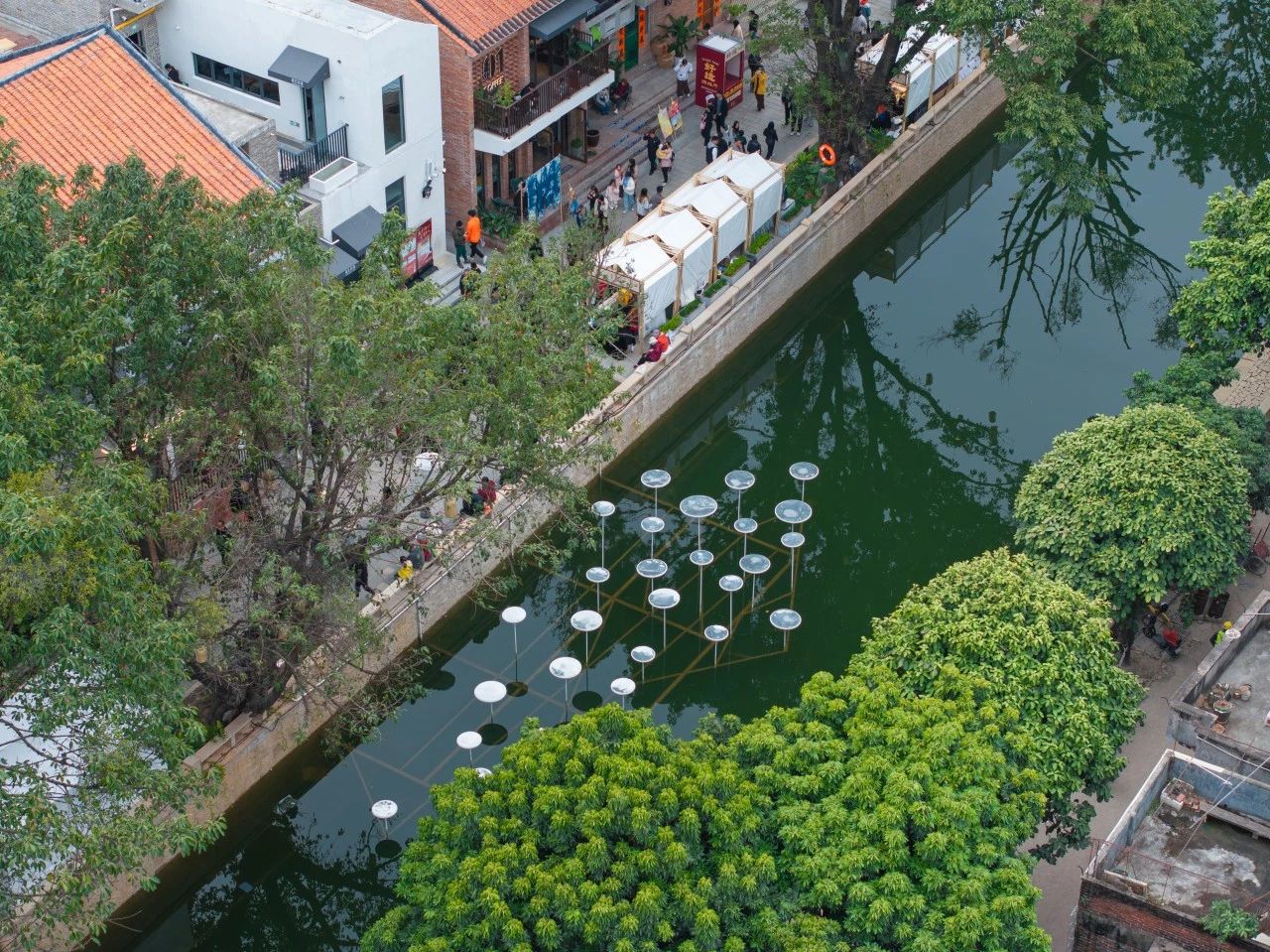 地下建设方面,揭盖复涌珊洲河,活化打造1公里滨水文化带,保障片区水安全,恢复城水共生的城市格局;新建高标准雨水管网和污水管网,在每个巷道口设置截流井接口,重建排涝泵站,标准提升至50年一遇,降低内涝风险;完善提升地下管网供水系统,更新老旧、破损给水管网,保障供水品质;实施三线下地工程,将街区架空线缆埋设入地,还原街区天际线,提升整体风貌。
