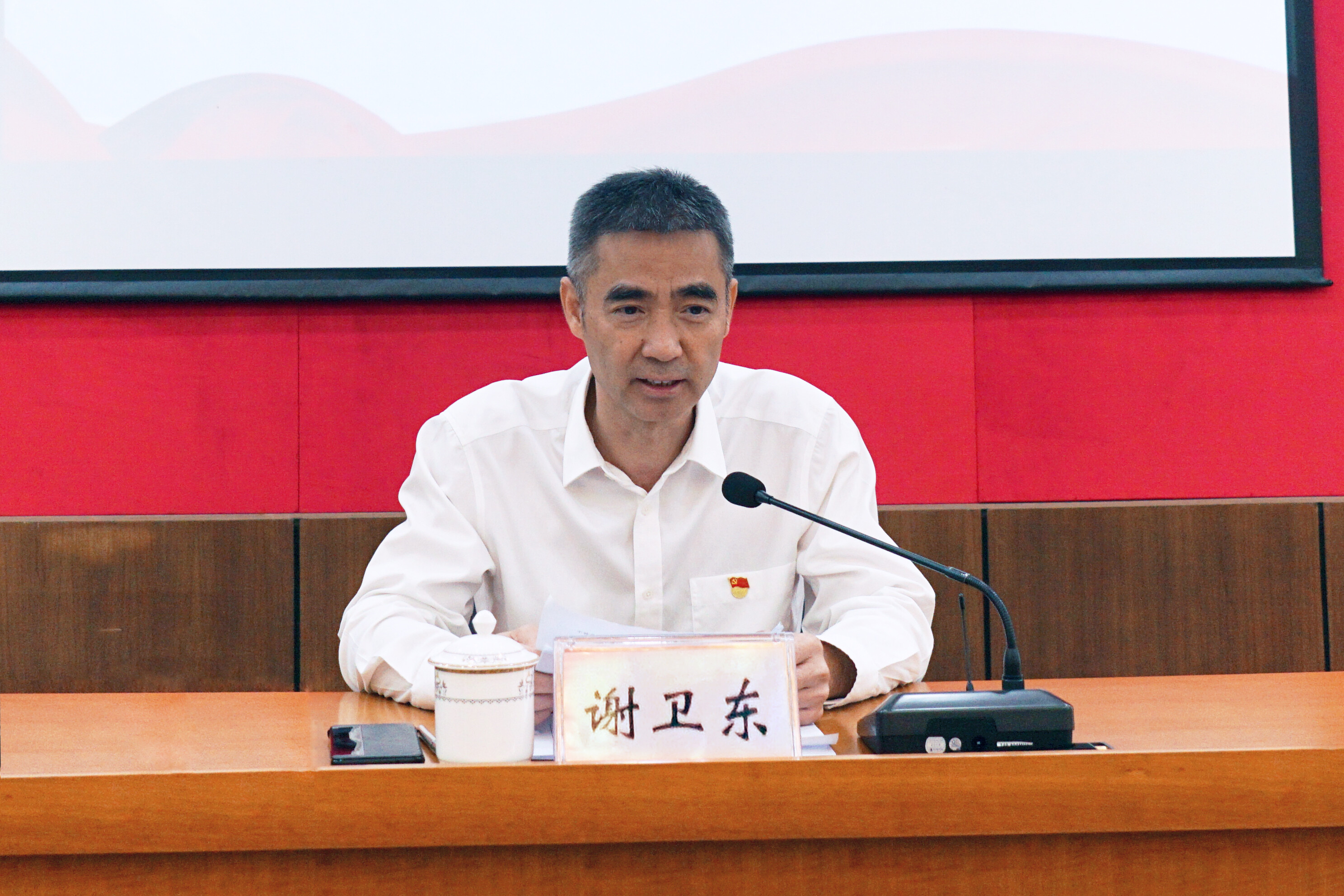 谢卫东同志结合传达学习贯彻习近平新时代中国特色社会主义思想主题教育总要求,压紧压实全面从严治党政治责任,紧盯住建部门的重点领域和关键环节,从四个方面进行授课:一是在“以学铸魂”中保持定力,坚持自我革命、坚定对党忠诚、坚守人民立场,增强全面从严治党永远在路上的政治自觉。二是在“以学增智”中直面压力,勇于面对经济稳增长压力、廉政风险压力、安全稳定压力以及一系列新承接重点任务压力,敢于担起新形势下住建工作的使命任务。三是在“以学正风”中提升能力,思想认识方面要有新转变、素质能力方面要有新提升、党风廉政方面要有新加强、工作作风方面要有新改进,锻造忠诚干净担当的高素质住建干部队伍。四是在“以学促干”中增添动力,强化住建领域科技集成应用赋能,提升住建对全市经济社会发展大局的支撑保障。